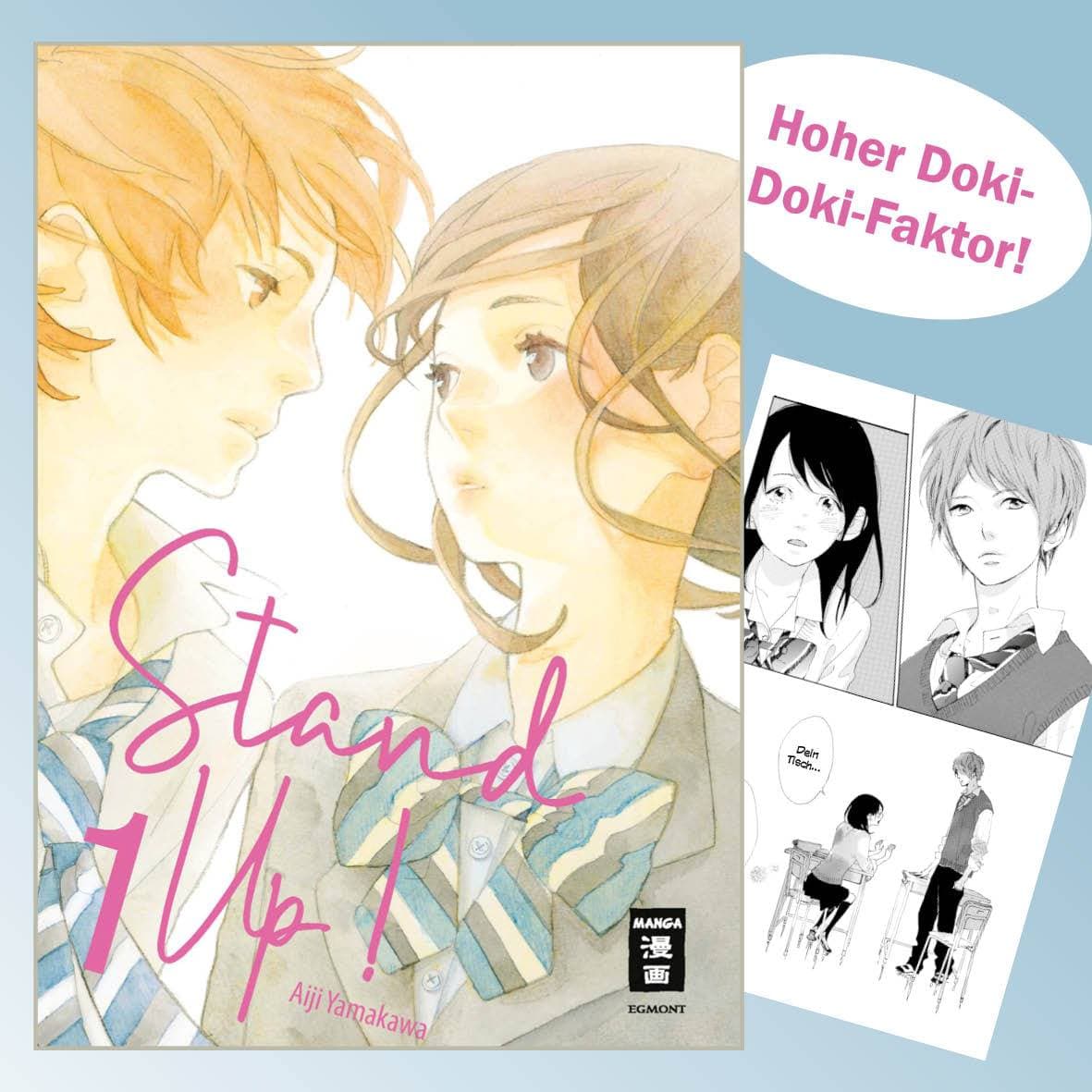 Mit Stand Up! starte im vergangenen Monat eine neue Reihe bei Egmont Manga. Mangaka Aiji Yamakawa wirkte zuvor an dem Slice-of-Life-Einzelband Das Geheimnis der Freundschaft als Illustratorin mit. Wir haben den Auftakt ihrer komplett eigenen Geschichte auf Deutsch für euch gelesen und berichten von unseren ersten Eindrücken zu dem Romance-Titel.